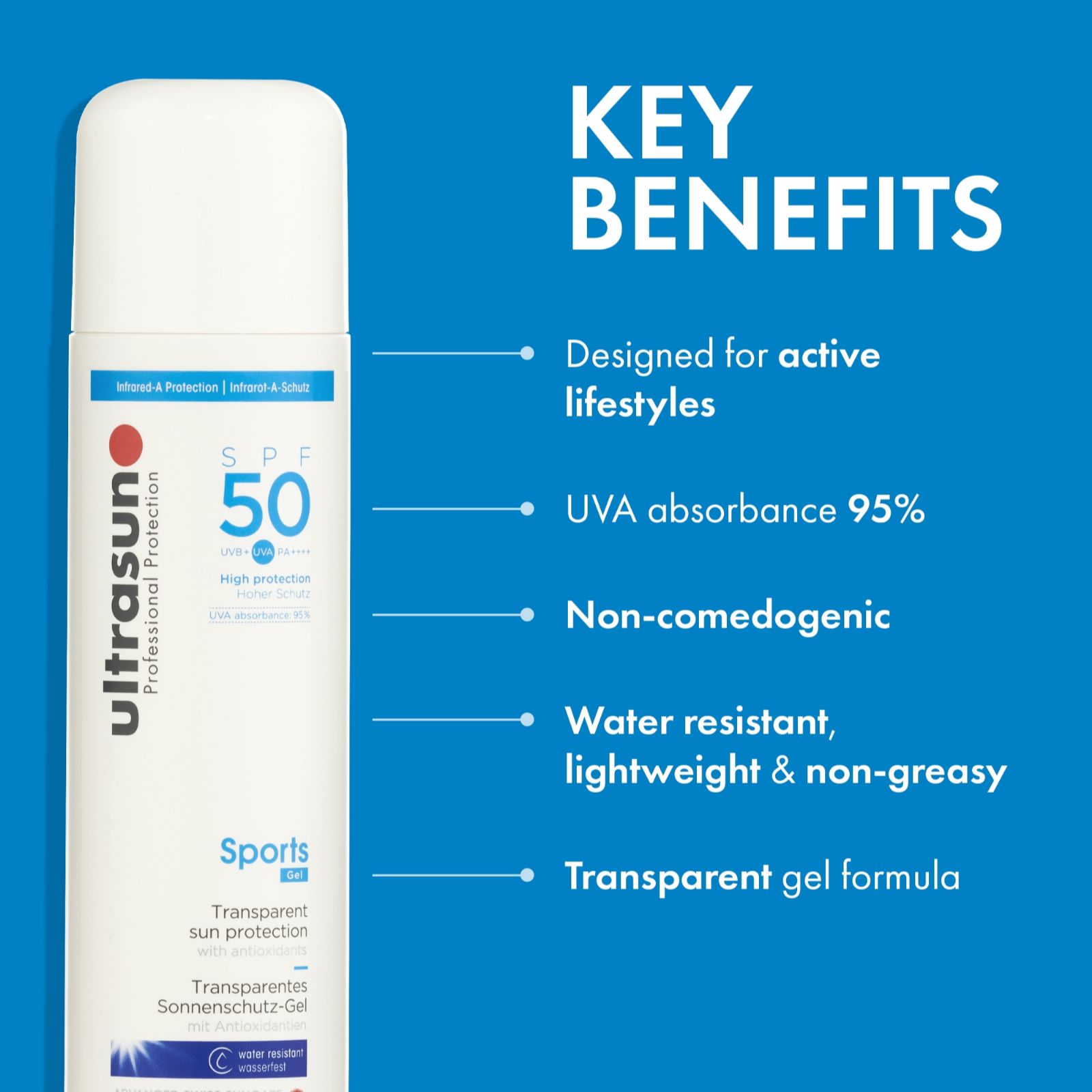 - 1 x Ultrasun Sports SPF50 Gel (250ml; supersize) - designed for active lifestyles, this transparent gel helps deliver high protection that's quick and easy to apply, making it perfect for outdoor workouts, hikes or water sports.