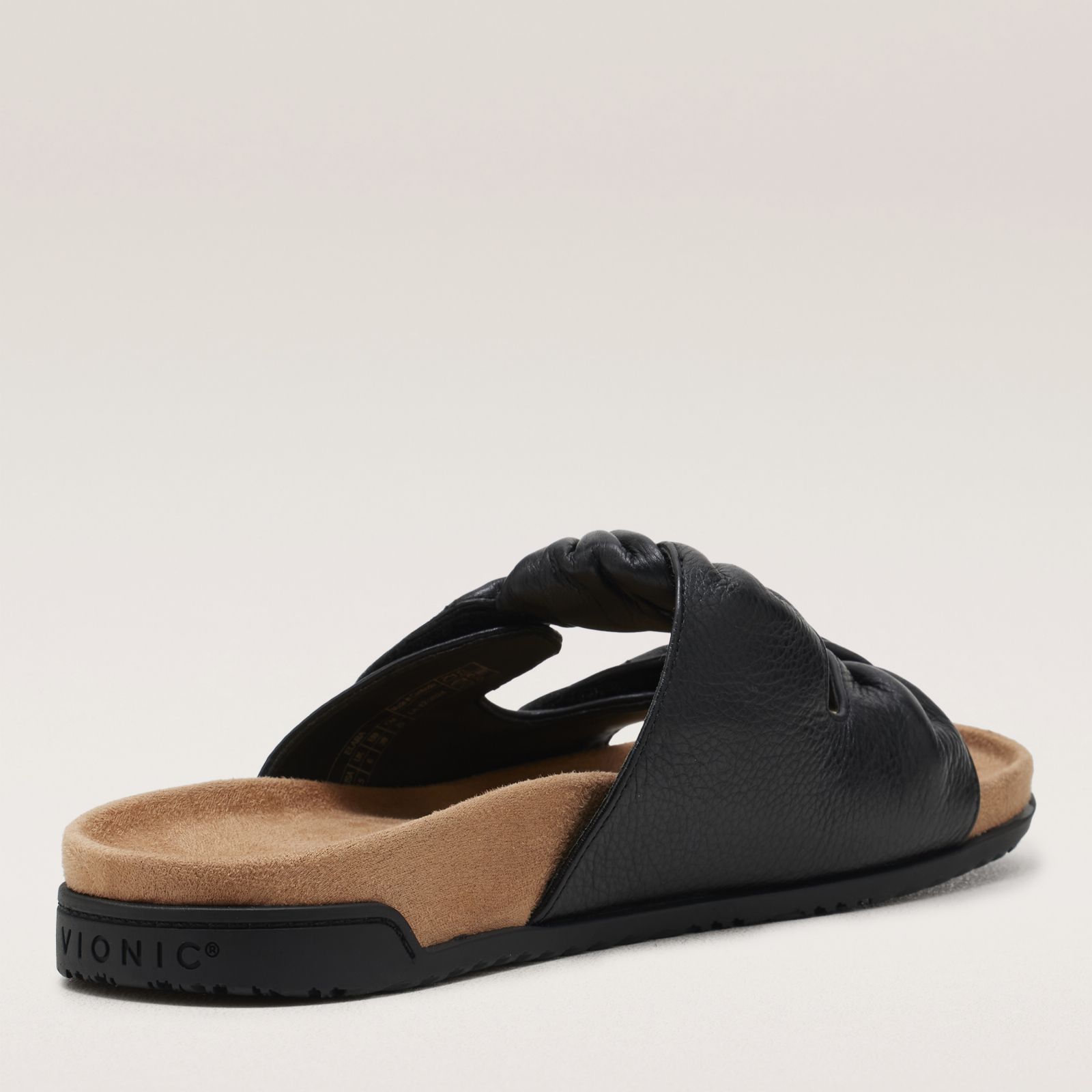 Slip into effortless comfort and style with the Elara Slide from Vionic. Crafted with knotted leather uppers and dual adjustable straps, these sandals ensure a perfect fit and a chic look. Ideal for casual outings or relaxed evenings, they feature a soft deconstructed footbed and VIO MOTION Technology for enhanced arch support and stability. Pair these slides with your favourite summer dress or casual jeans for a laid-back yet fashionable ensemble.
