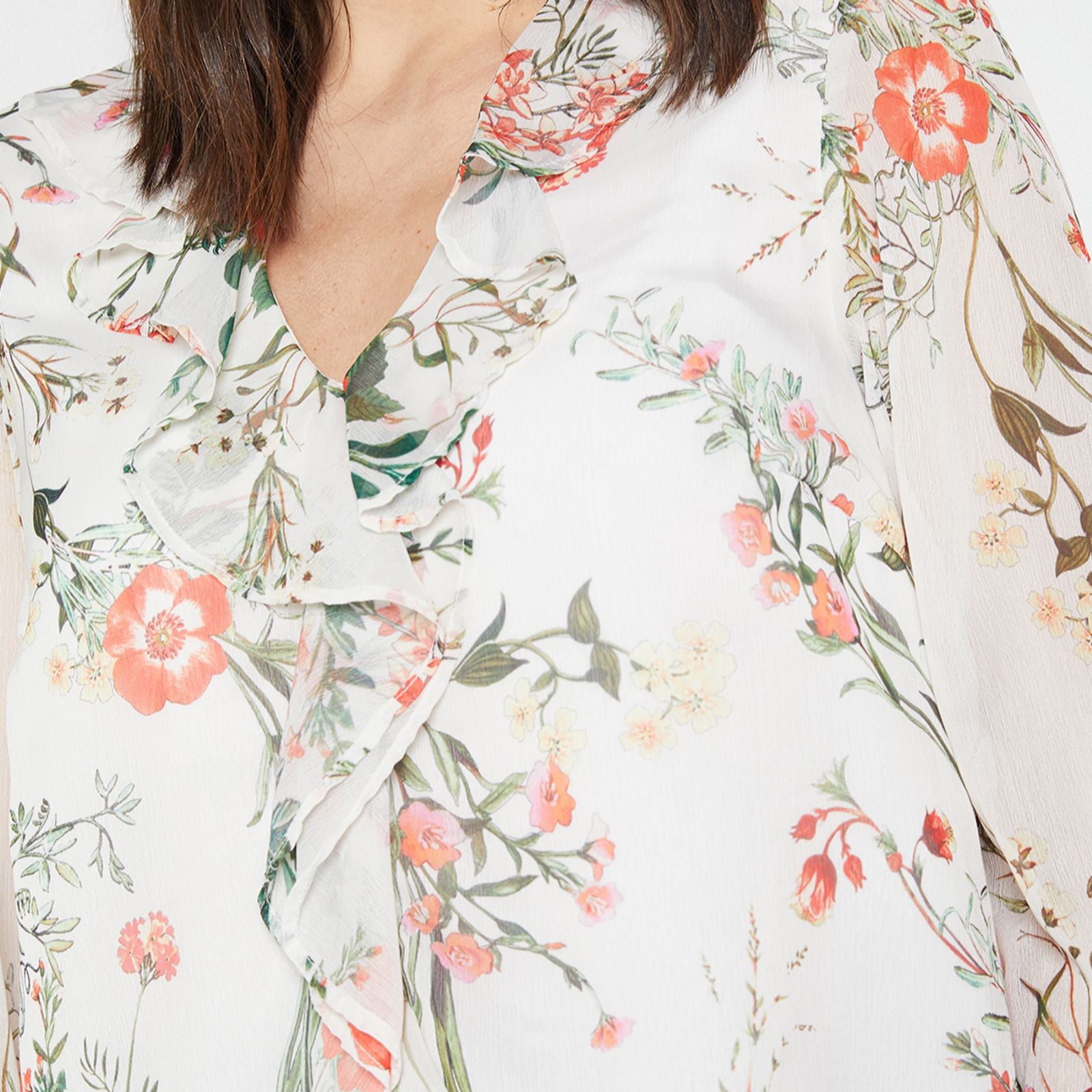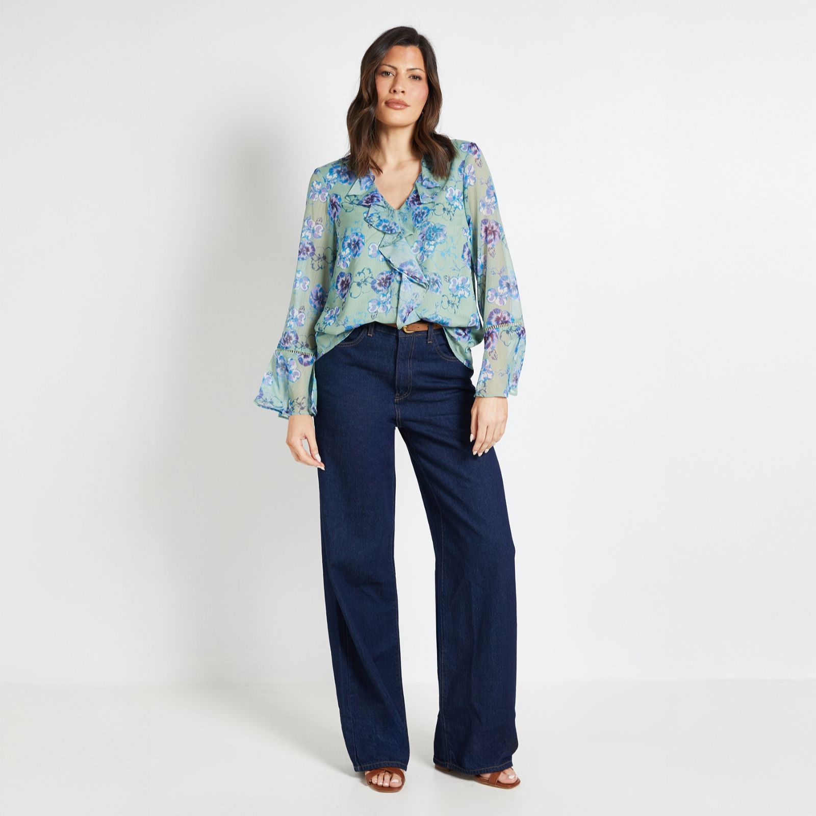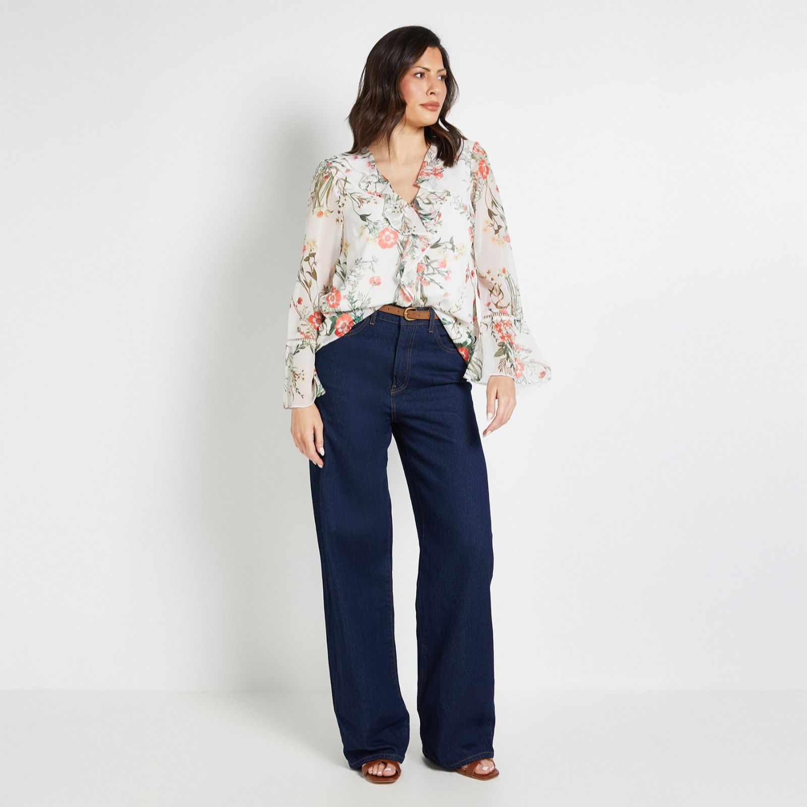 Gracefully blending feminine detailing with timeless style, the printed ruffle blouse with lace insert from Wallis brings an elegant touch to everyday dressing. Its delicate ruffles and lace accents create a beautifully soft silhouette, making it perfect for both workdays and weekend outings. Pair it with slim trousers for a polished office look or with jeans for relaxed sophistication.