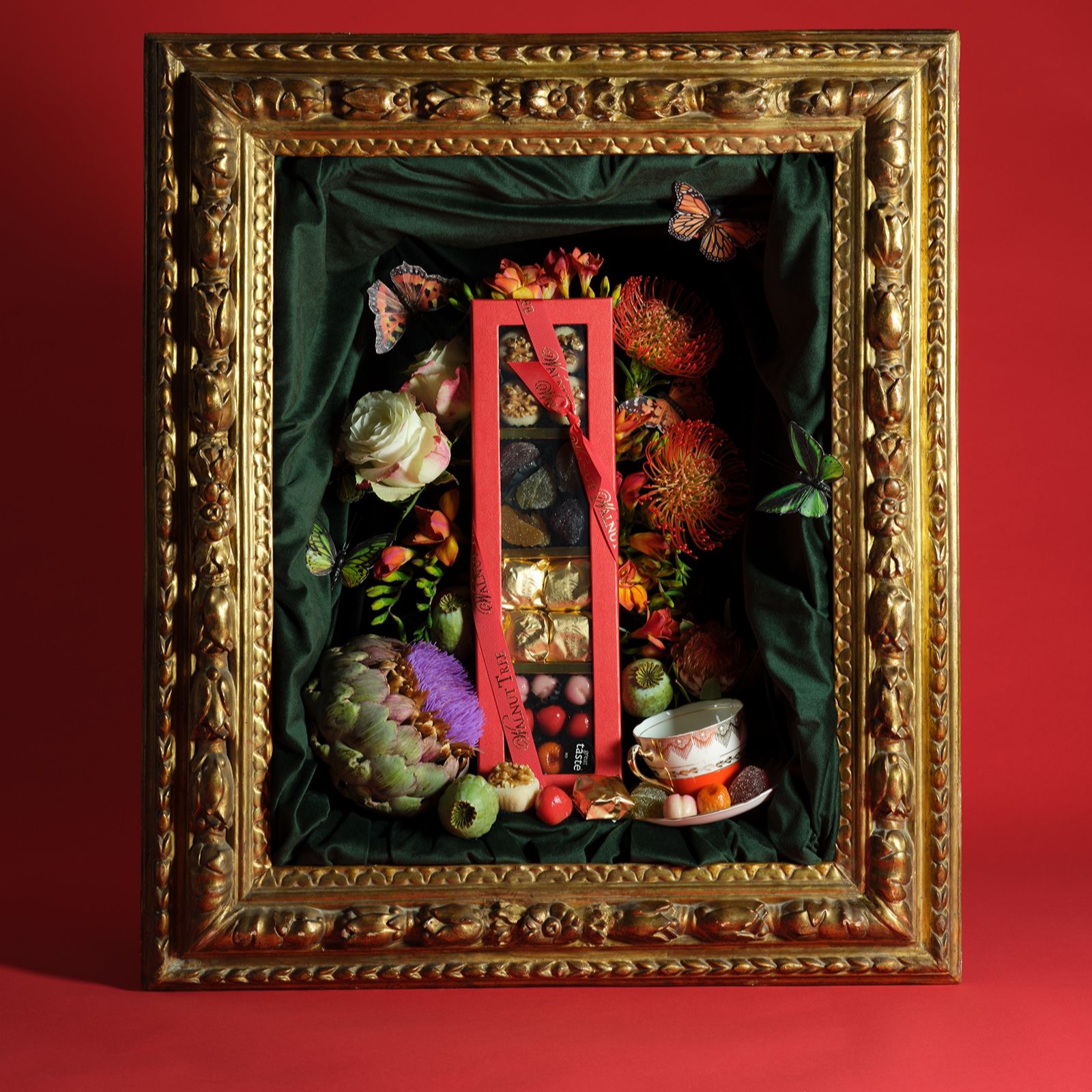 - Each box contains Marron Glace (candied chestnuts, Great Taste Gold Star Award Winner), Fruit Jellies (gourmet jellies, Great Taste Gold Star recognised), Hand-Finished arzipan Fruits and Marzipan Balls with Whole Walnuts