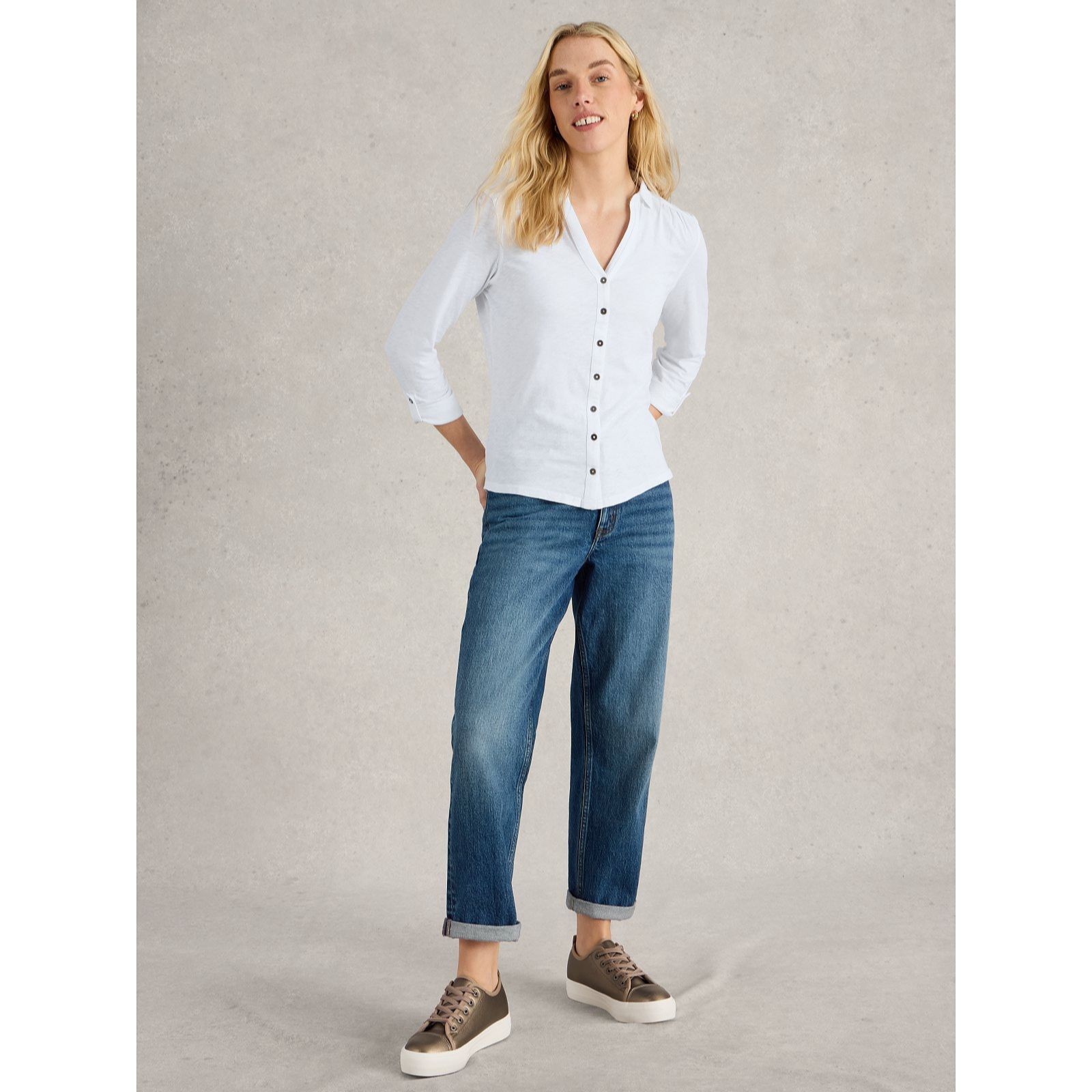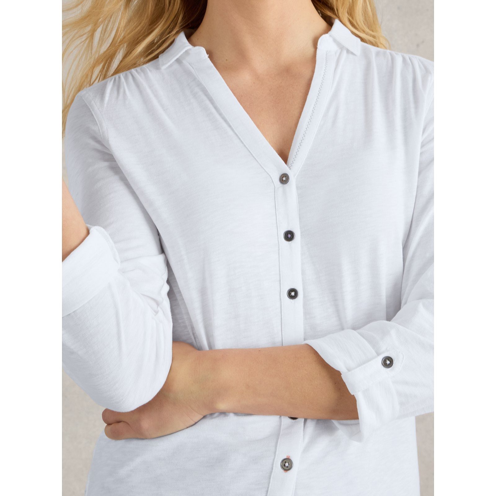 Indulge in the soft, inviting and endlessly versatile Annie Jersey Shirt from White Stuff. This piece is your answer to effortless everyday dressing, crafted in a relaxed silhouette with a classic collar and button-down front. This long-sleeved staple offers all-day comfort whether you're heading to the office or enjoying a laid-back weekend. Try styling it open over a vest and jeans for a modern layered look.