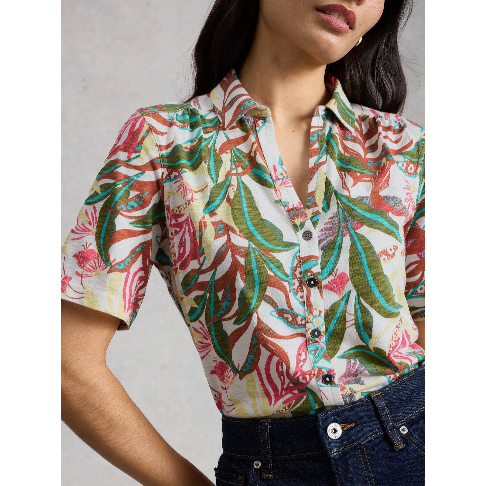 White Stuff Annie Printed Short Sleeve Jersey Shirt