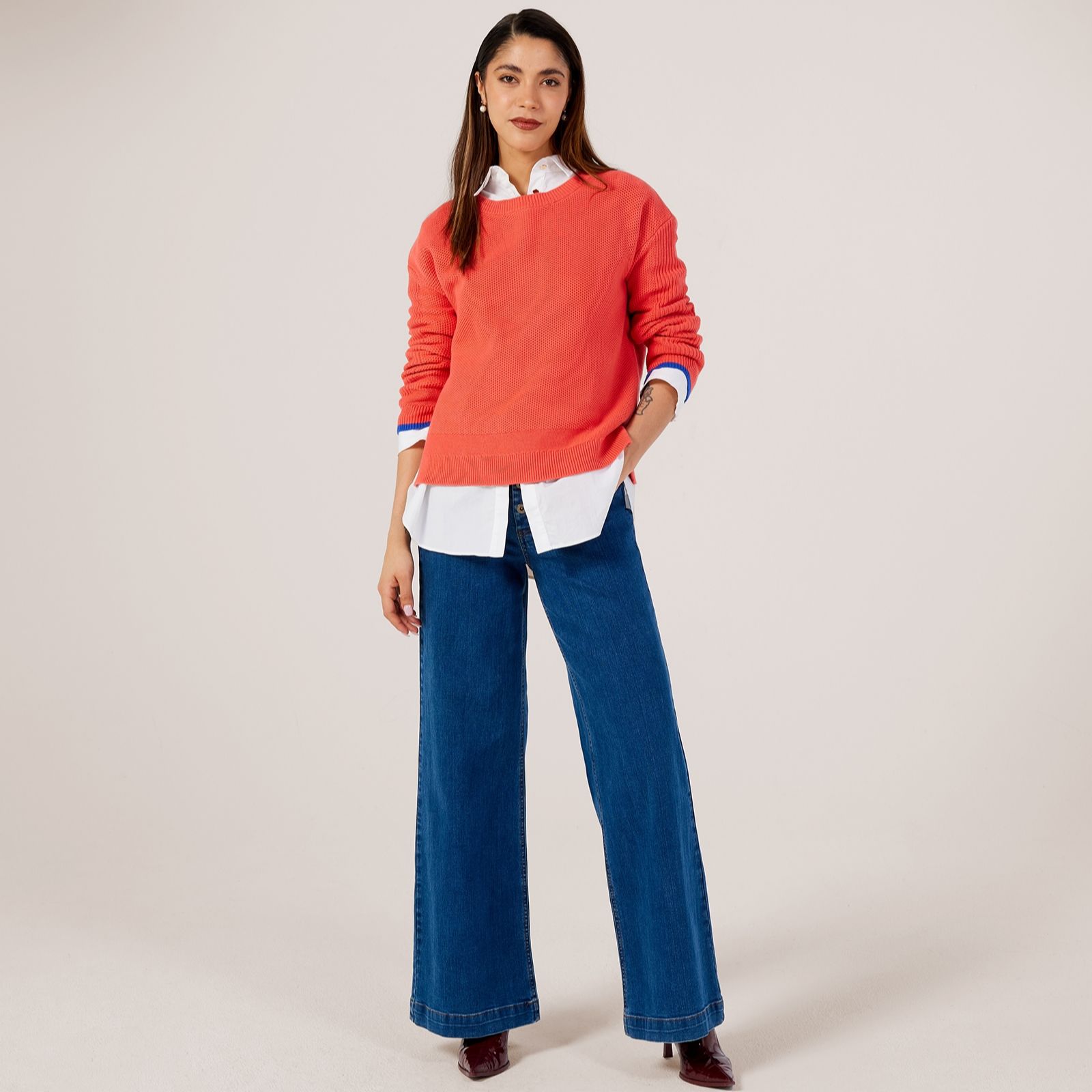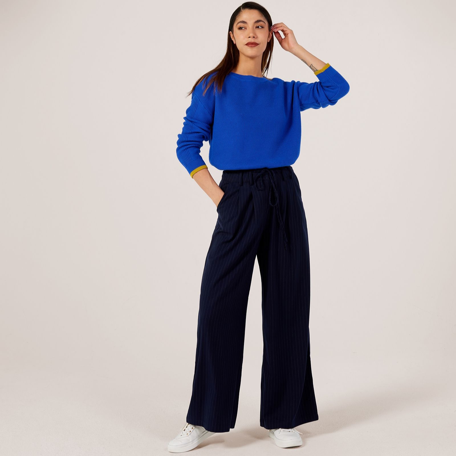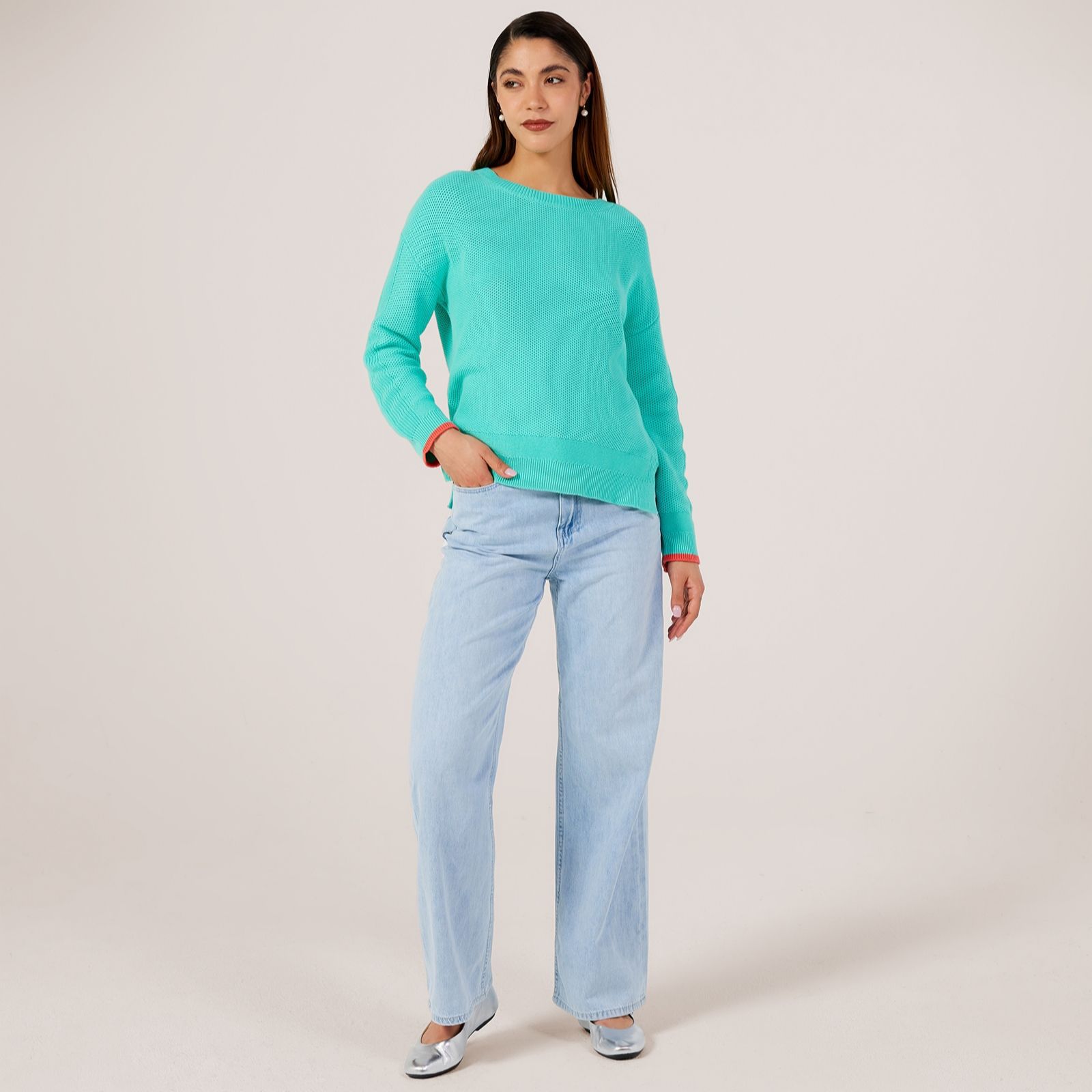 this fashion basic offers a classic cut you can rely on day in, day out, with stylish details that will elevate your look in seconds. The dropped shoulder design adds interest and the contrast colour cuffs will finish your outfit with a fashionable edge. The best part? This jumper is easy to style with anything you own, so it strikes the perfect balance between versatility and fashion.