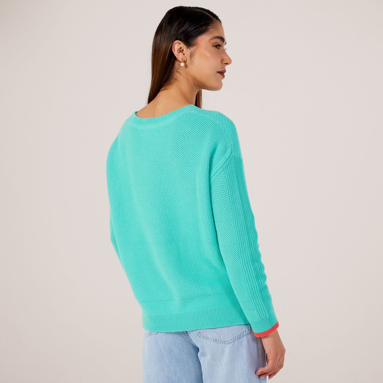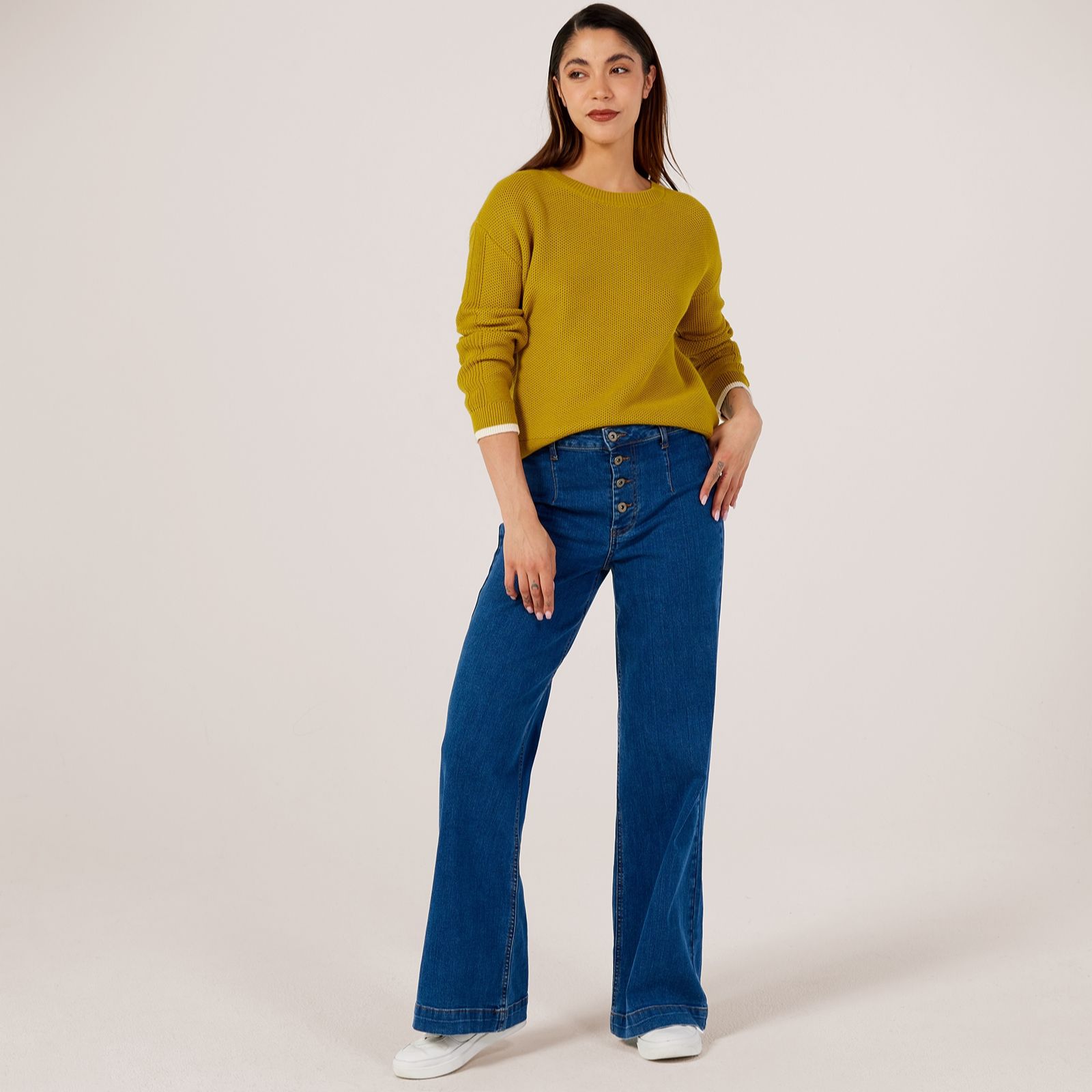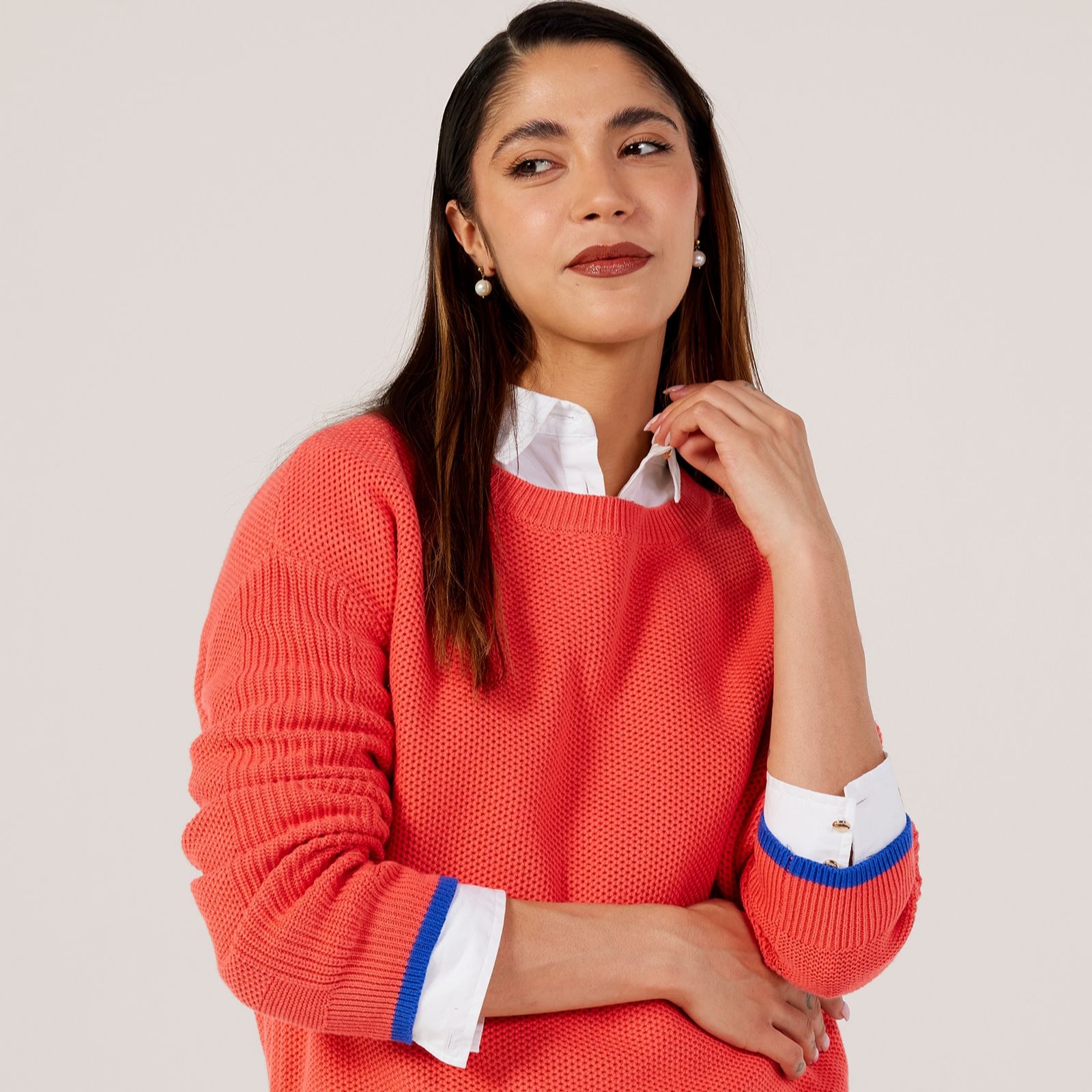 this fashion basic offers a classic cut you can rely on day in, day out, with stylish details that will elevate your look in seconds. The dropped shoulder design adds interest and the contrast colour cuffs will finish your outfit with a fashionable edge. The best part? This jumper is easy to style with anything you own, so it strikes the perfect balance between versatility and fashion.