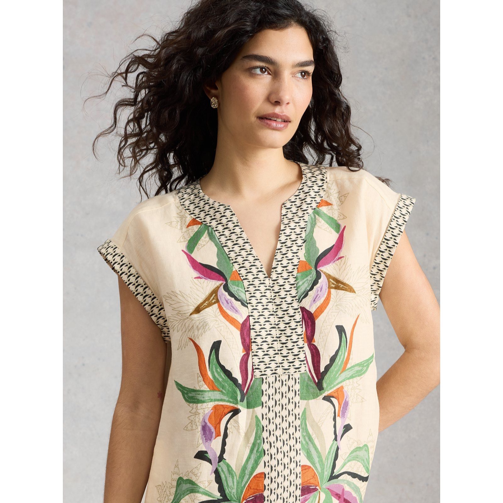 Slip into easy summer style with the Jilly linen dress from White Stuff, a relaxed V-neck design that captures laid-back charm with its contrast placket and turned-back cap sleeves. Perfect for holidays, weekend strolls or casual lunches, this breezy piece keeps you cool and comfortable wherever the day takes you. Pair it with espadrilles and a woven tote for effortless warm-weather chic.