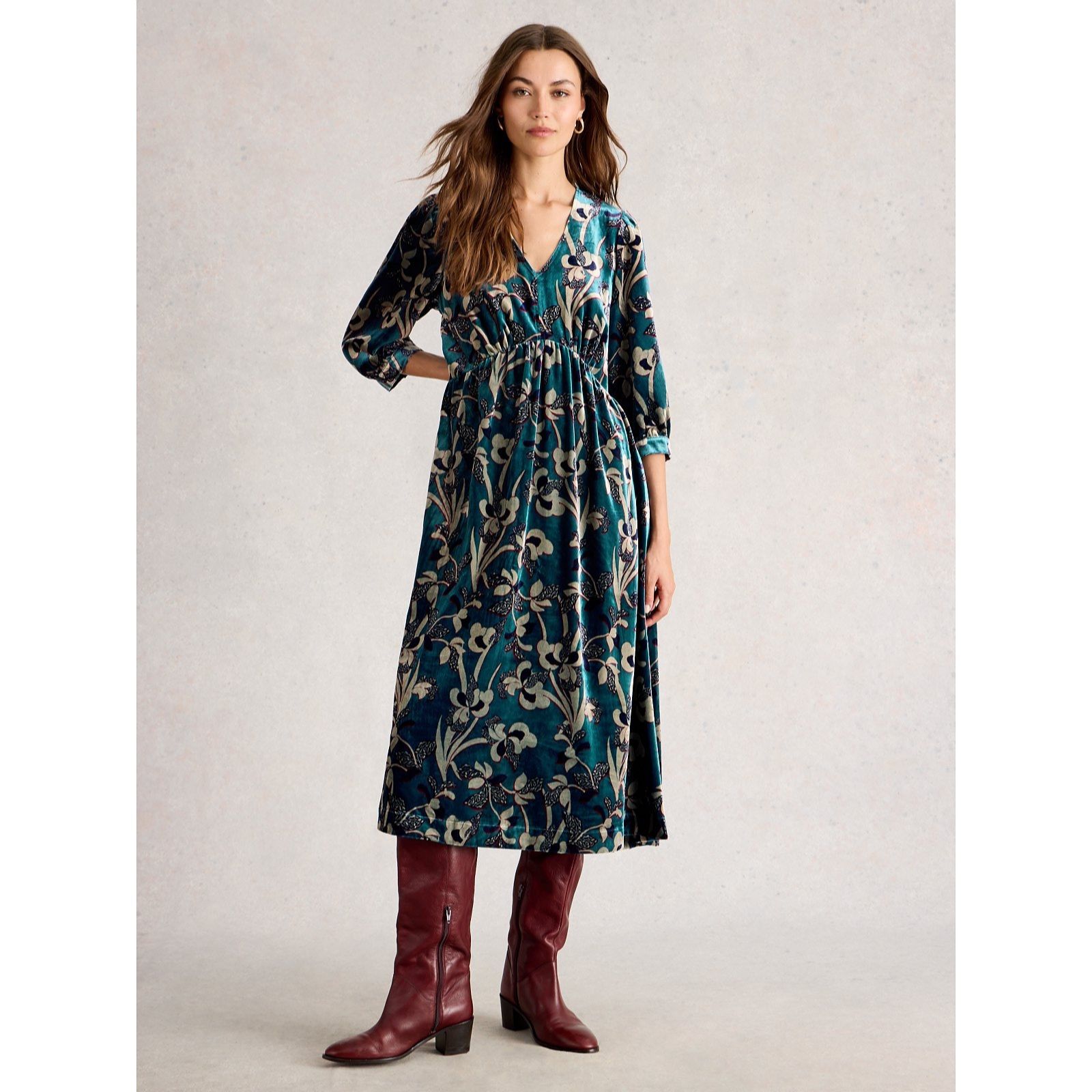 Make an entrance in the Lucy velvet dress from White Stuff, where a striking blue multi print meets plush velvet for a look that's both eye-catching and effortlessly elegant. With its relaxed fit and flattering V-neck, this dress is perfect for everything from weekend gatherings to evening dinners. Try pairing it with ankle boots and a statement necklace for a chic, seasonal ensemble that transitions seamlessly from day to night.