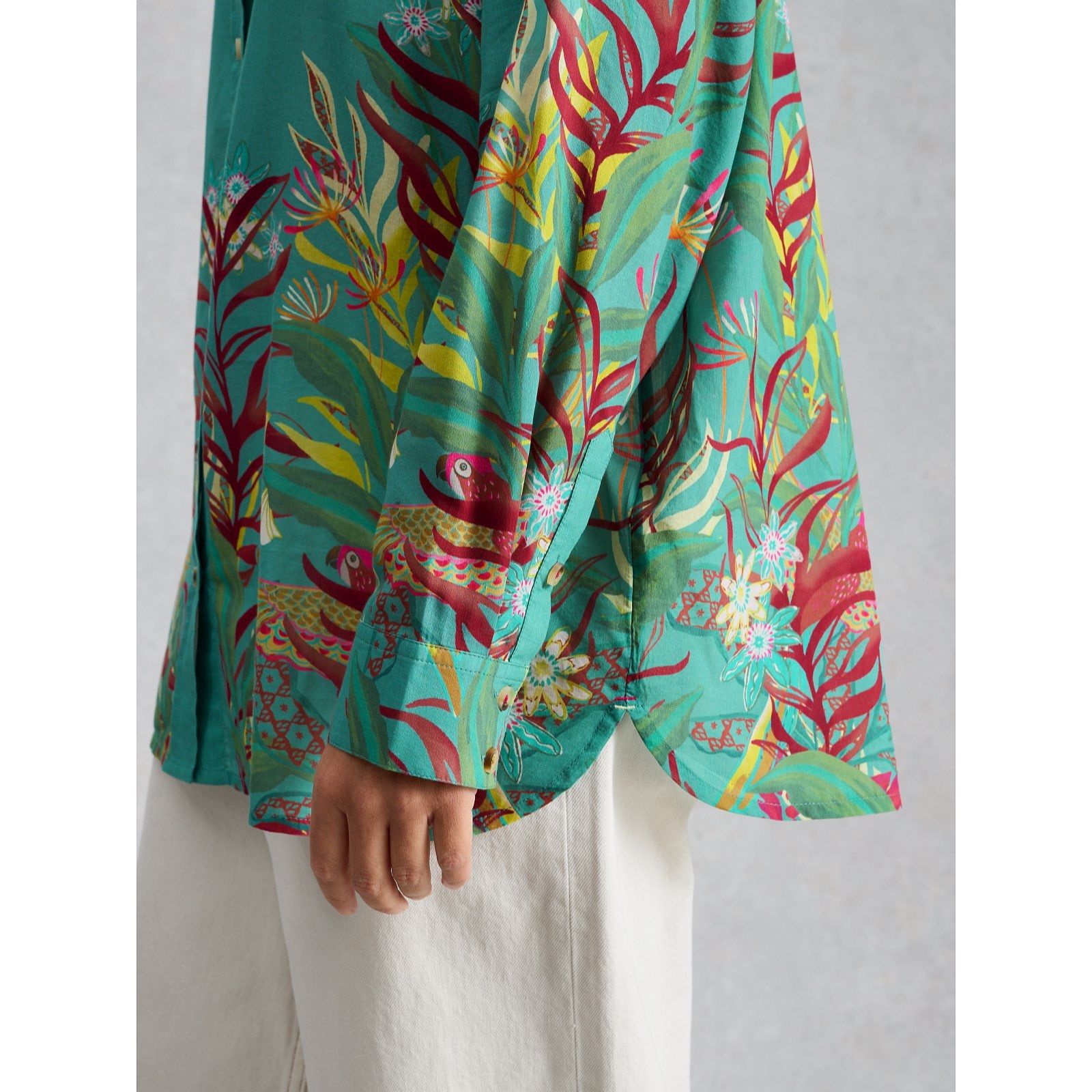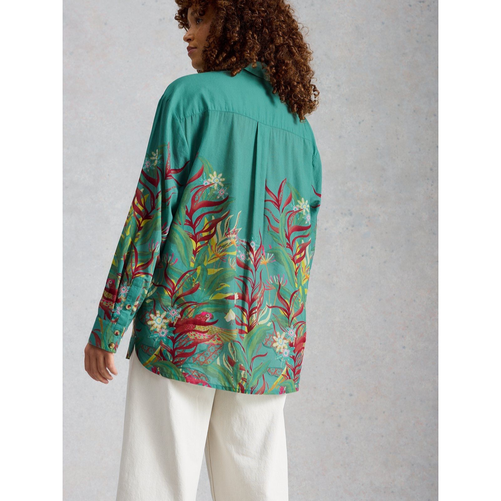 Brimming with breezy charm, the Lydia shirt from White Stuff brings a touch of tropical flair to your wardrobe. With its playful parrot and leaf print, this oversized classic shirt pairs a relaxed silhouette with a laid-back, artsy vibe. Perfect for weekend brunches or sunny getaways, it looks effortlessly chic tucked into linen trousers or worn loose over denim for an easy, carefree look.