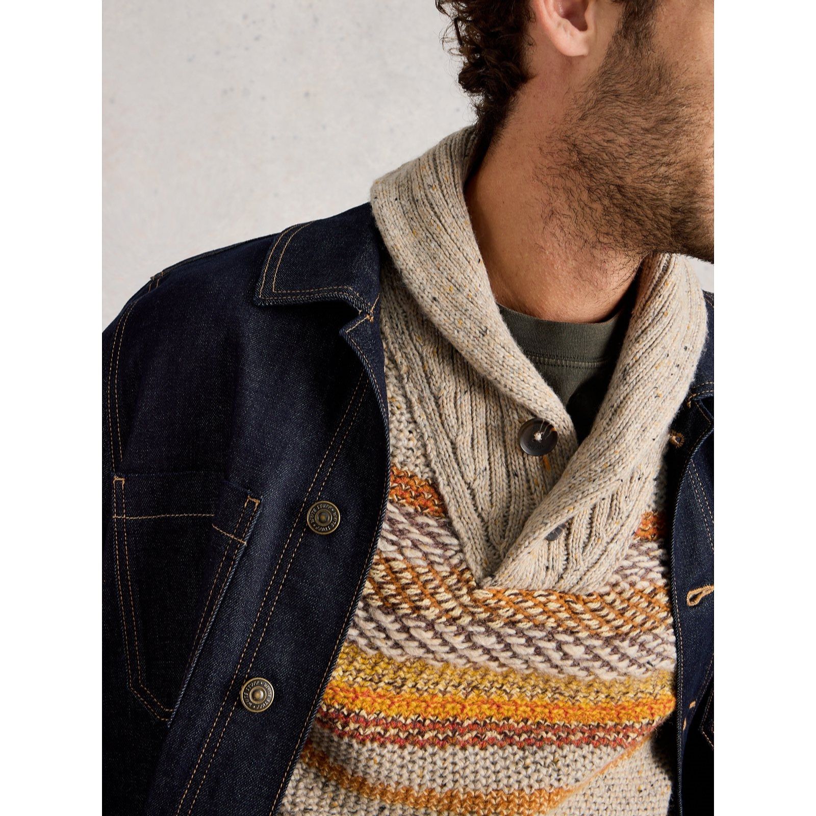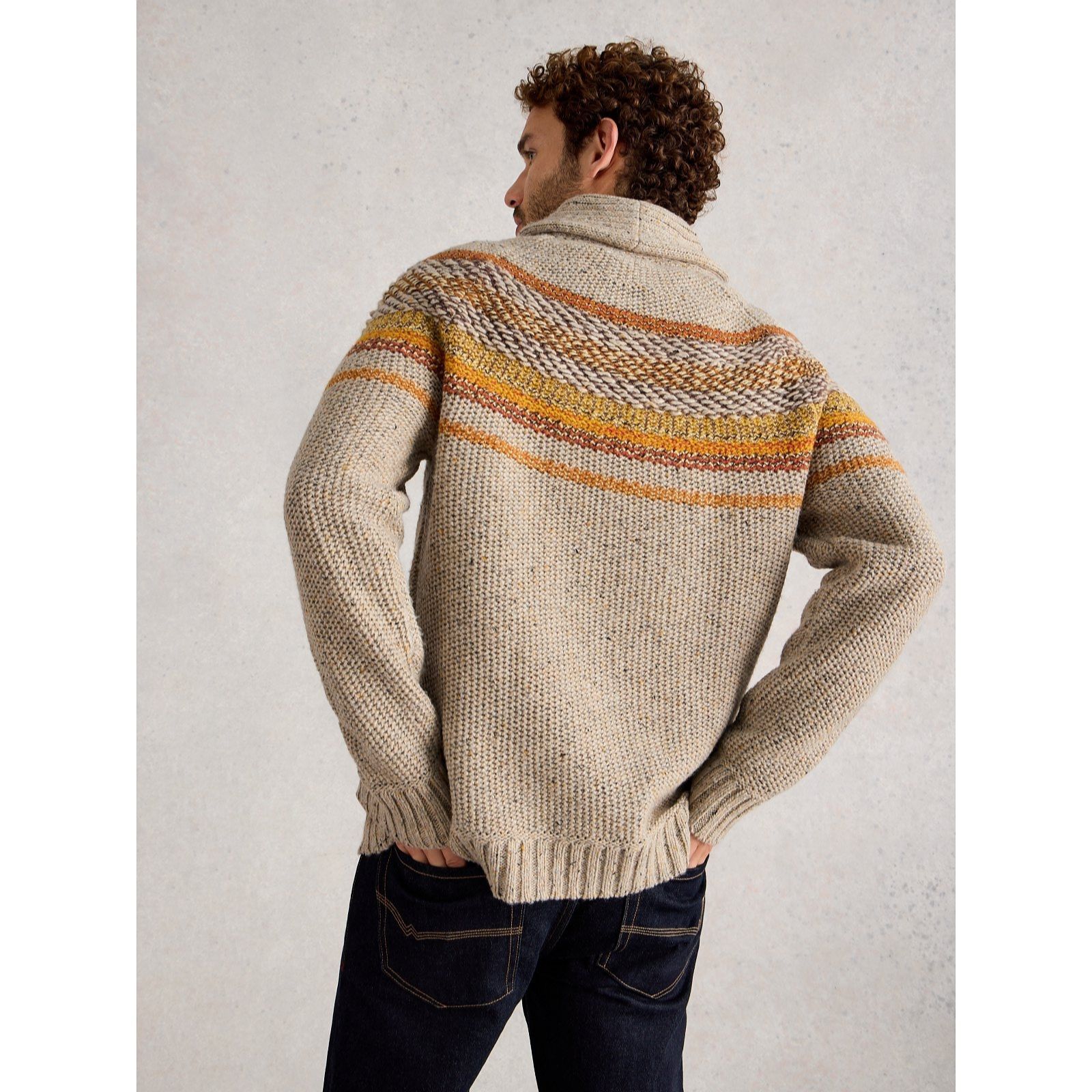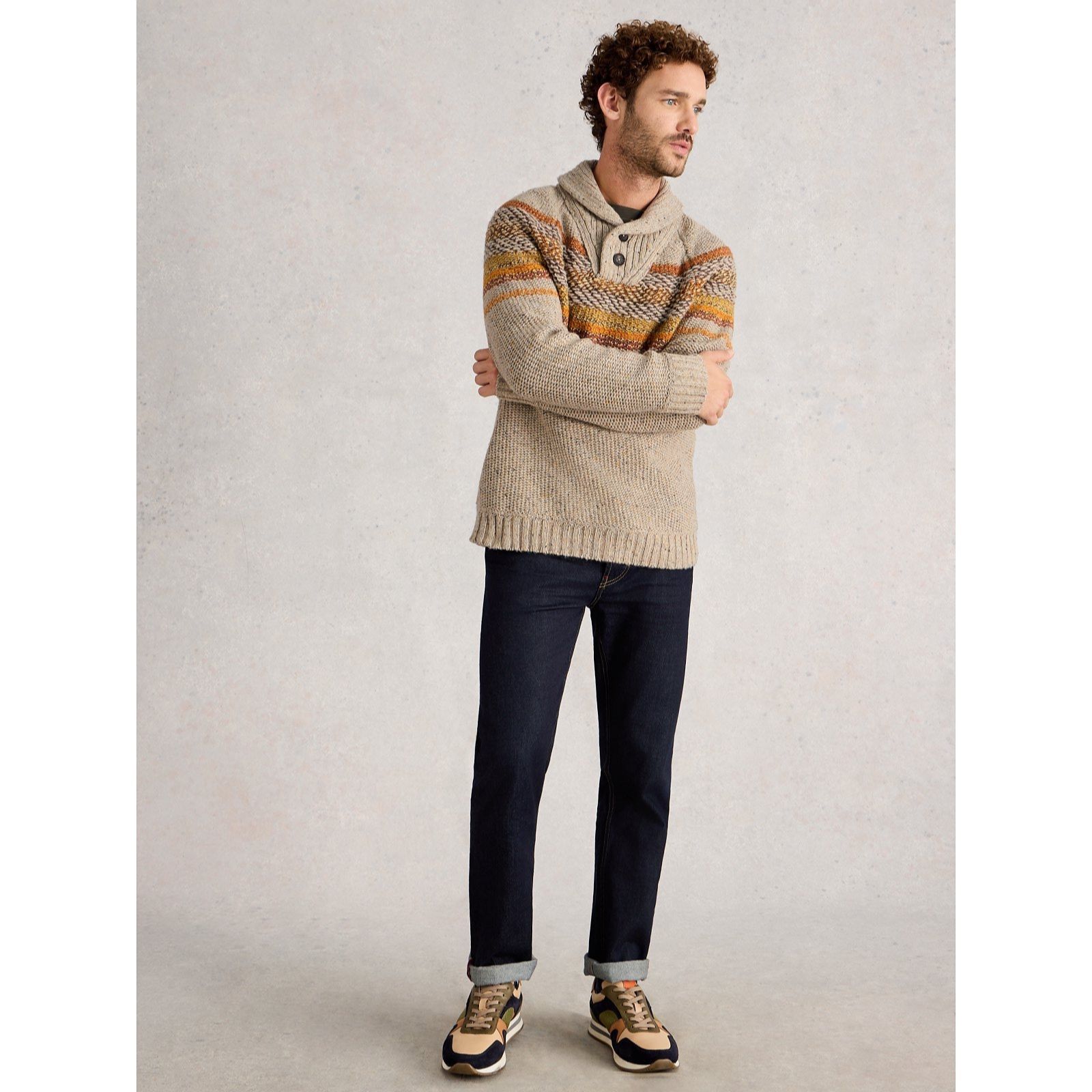 Enhance his autumn/winter wardrobe with this York shawl neck jumper from White Stuff, where a textured knit and stylish neckline combine to add interest to his cooler-season outfits. Its regular fit and long sleeves make it perfect for laid-back weekends, city strolls or casual evenings out. Layer it over a crisp shirt and jeans for a relaxed yet polished look.