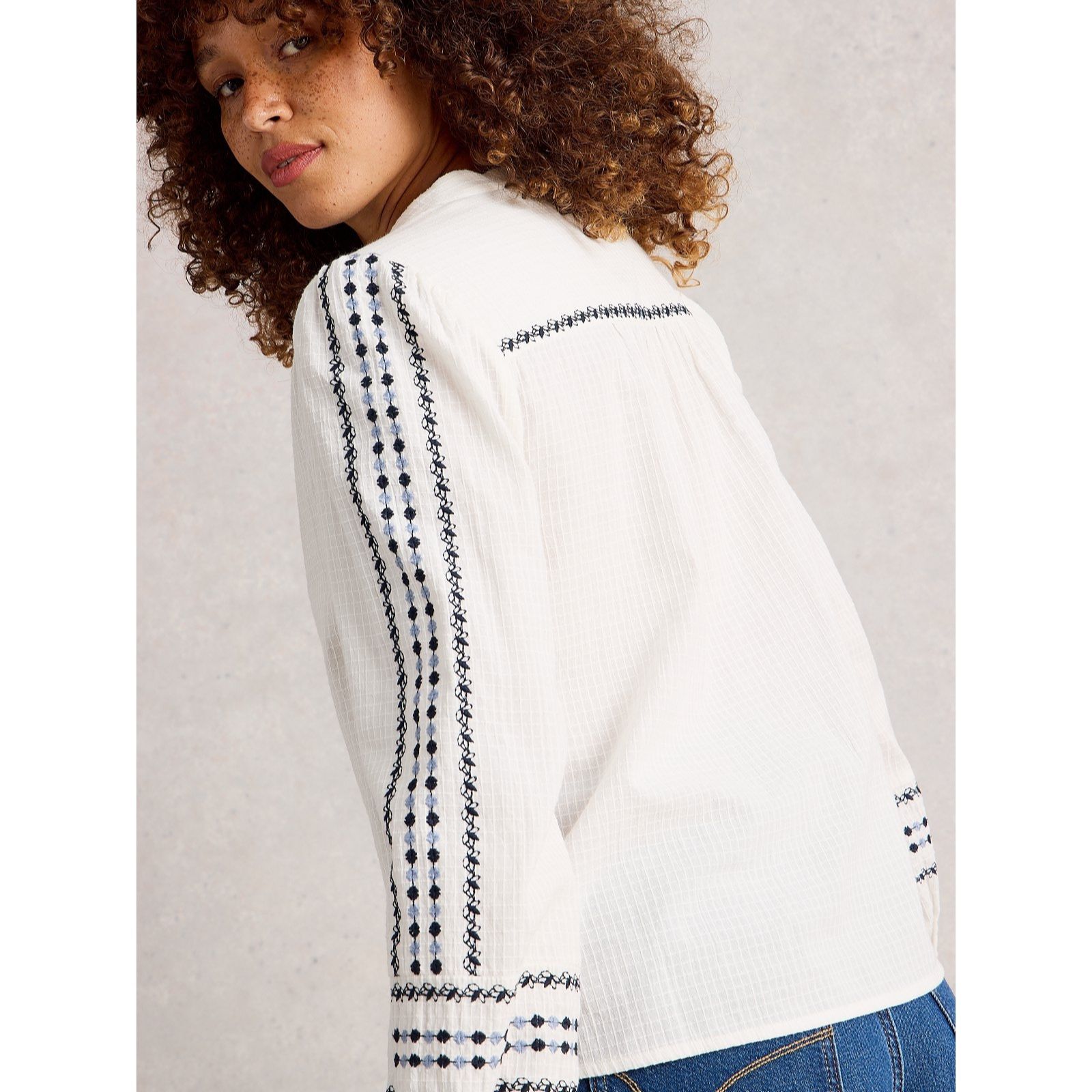 Add a touch of artistry to your look with the Naomi embroidered shirt from White Stuff, offering a charming update on a timeless button-up silhouette. With its gently elasticated cuffs and crisp collar, this shirt transitions seamlessly from workday meetings to relaxed weekends. Style it tucked into tailored trousers or left loose over jeans for effortless appeal.