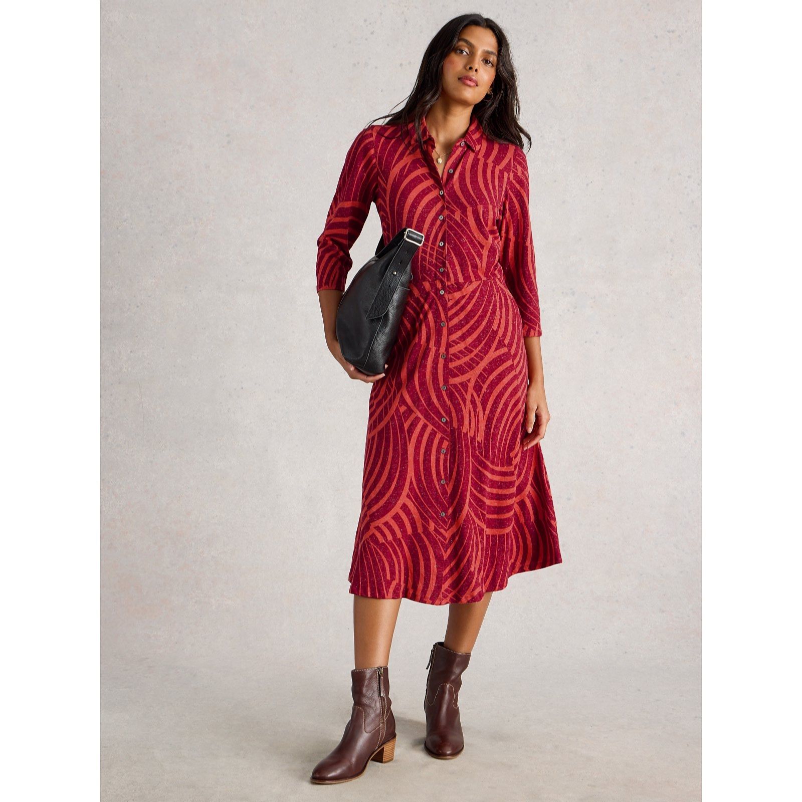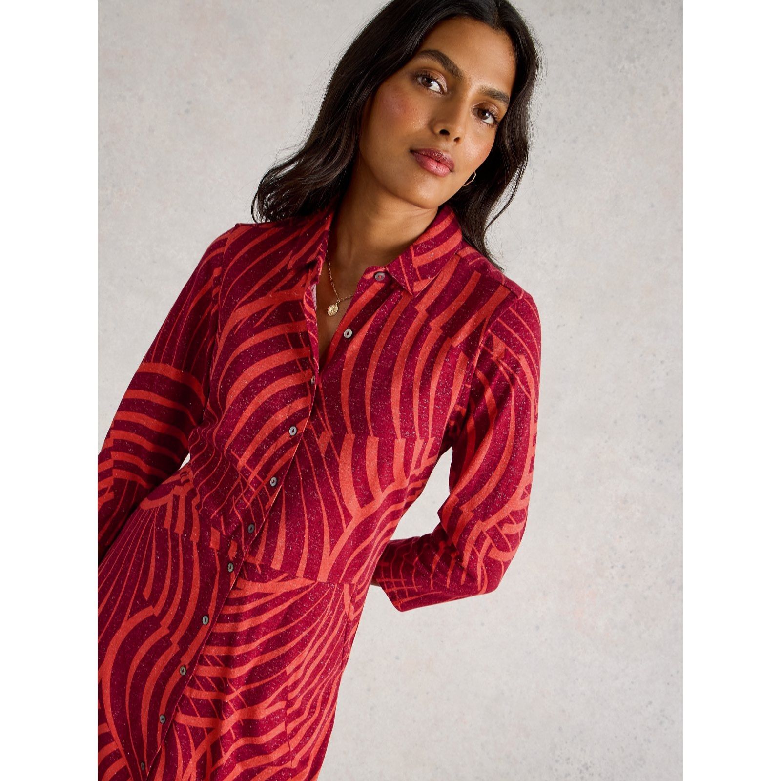 Bring a touch of shimmer to your day with the Rua Sparkle Jersey Shirt Dress from White Stuff, where the beloved classic shirt dress gets a sparkling update in soft jersey fabric. Perfect for everything from office days to weekend brunches, its midi length and 3/4 sleeves make it endlessly versatile. Try it with ankle boots and a chunky knit for a chic, layered look.