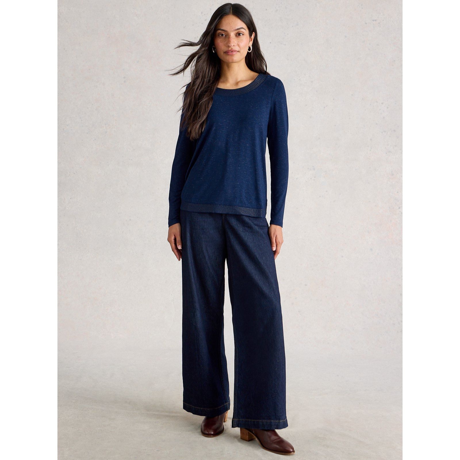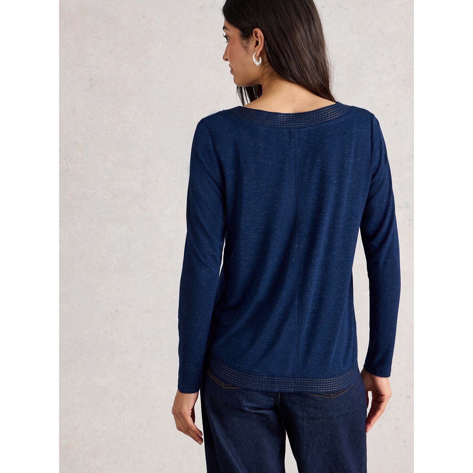 Add a touch of subtle sparkle to your everyday wardrobe with the Weaver long sleeve sparkle tee from White Stuff. This regular fit jersey top features a lightweight feel, shimmering thread woven throughout, and elegant woven trim detailing at the slash neckline for a hint of sophistication. Perfect for brightening up casual days or adding interest to evening looks, it effortlessly transitions from work to weekend. Pair it with tailored trousers for a polished finish or layer under a blazer for extra flair.