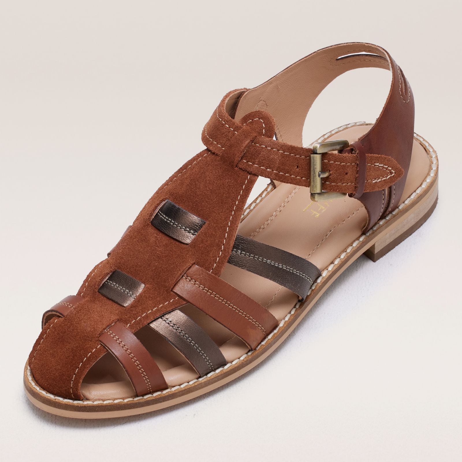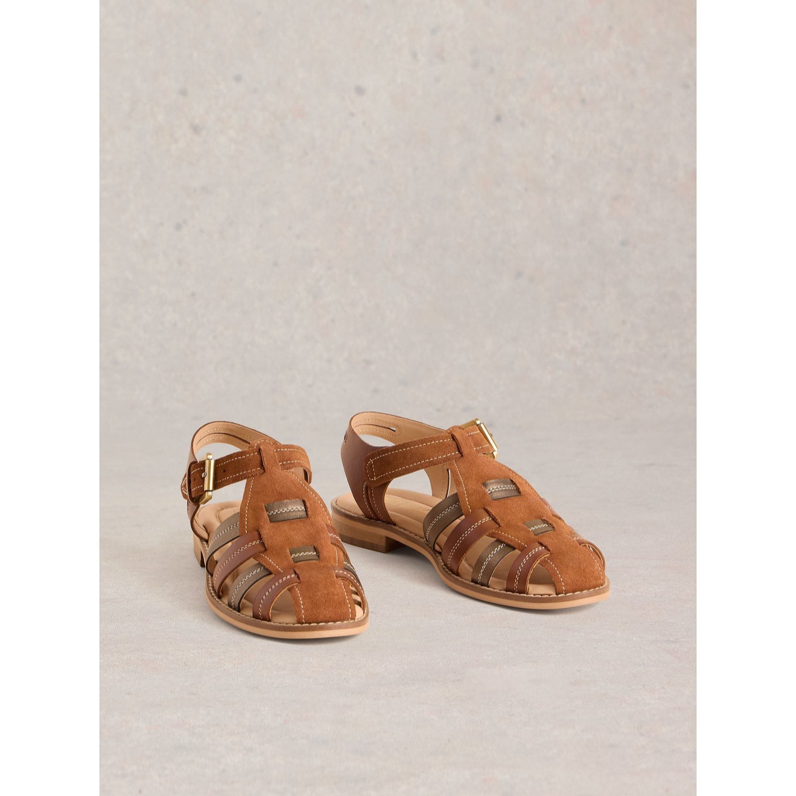 Step into timeless style with the Zara Fisherman Sandal from White Stuff. These sandals combine a strappy design with contrast stitching on the straps, ensuring a chic yet casual look for any occasion. Crafted from high-quality leather, they feature comfortable insoles and a buckle fastening at the ankle for a secure fit. Ideal for both day and night, pair these versatile sandals with anything from a summer dress to your favourite jeans for effortless elegance.
