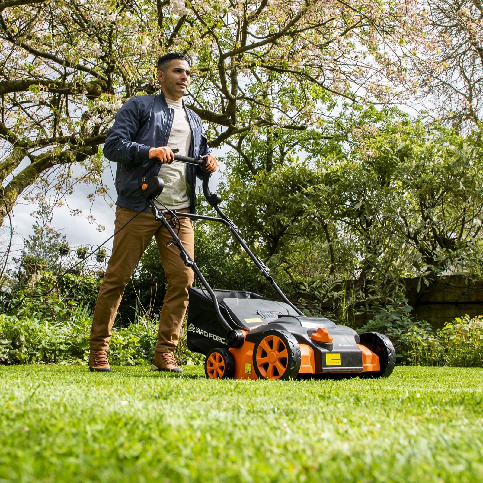 includes a 45L grass bag to collect the debris, so you can keep your garden tidy with ease