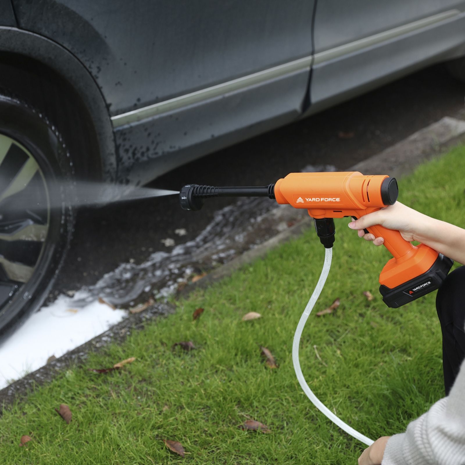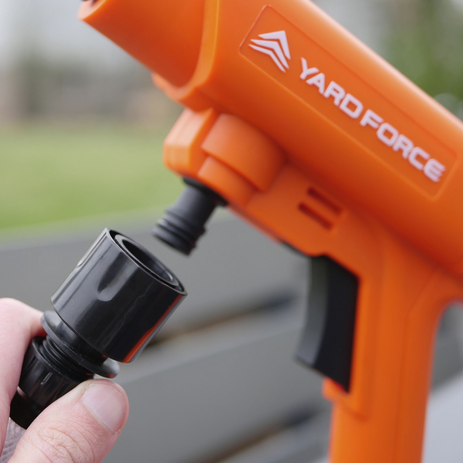 Embrace the freedom of cordless cleaning with the Yard Force 20v Cordless Pressure Washer. This versatile and portable system is your go-to solution for all outdoor cleaning tasks - from sprucing up your bike, windows, and decking to giving outdoor furniture and gutters a new lease of life. Not only is it a breeze to assemble, but its powerful 20V 2.5Ah Li-Ion battery also ensures prolonged run times. What's more, its ability to draw water from any source, be it tap, bucket, or stream, elevates its convenience, making it a must-have for any garden.