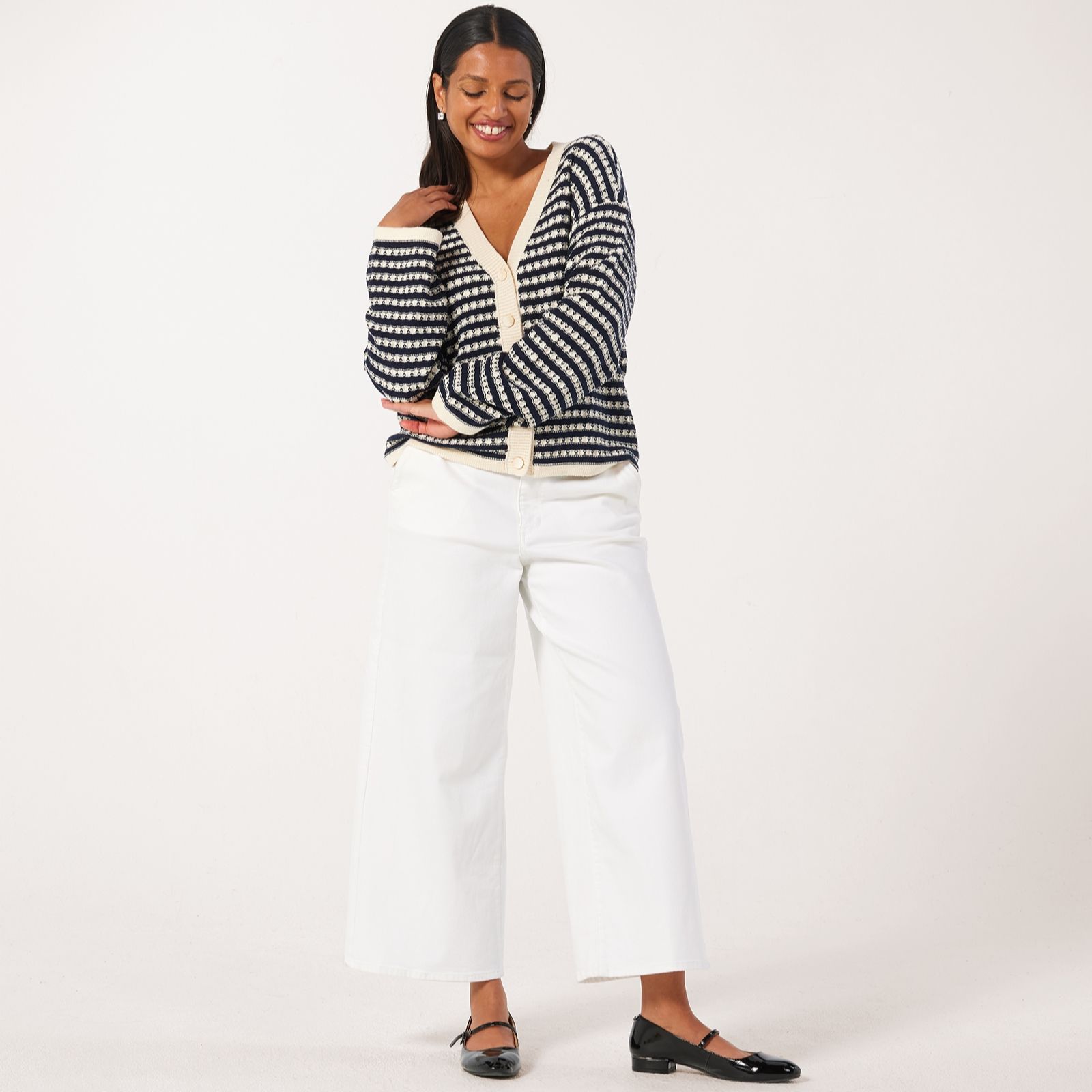 Indulge in the charm of the Yas Cibyl Stripe Knitted Cardigan. This cardigan features a timeless stripe pattern, a classic V-neckline and long sleeves with dropped shoulders for a relaxed fit. Perfect for layering throughout the seasons, it can be dressed up or down for any occasion. Pair it with your favourite jeans for a casual look or layer over a dress for a more polished ensemble.