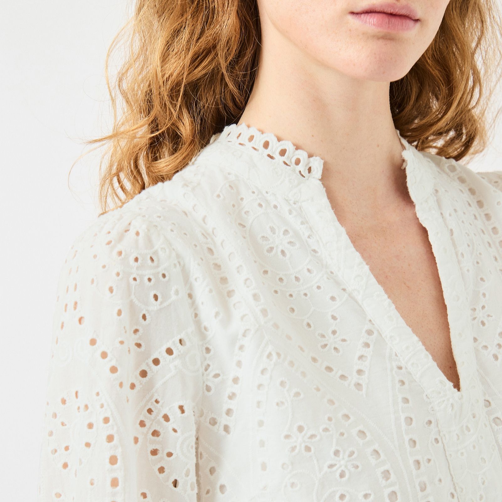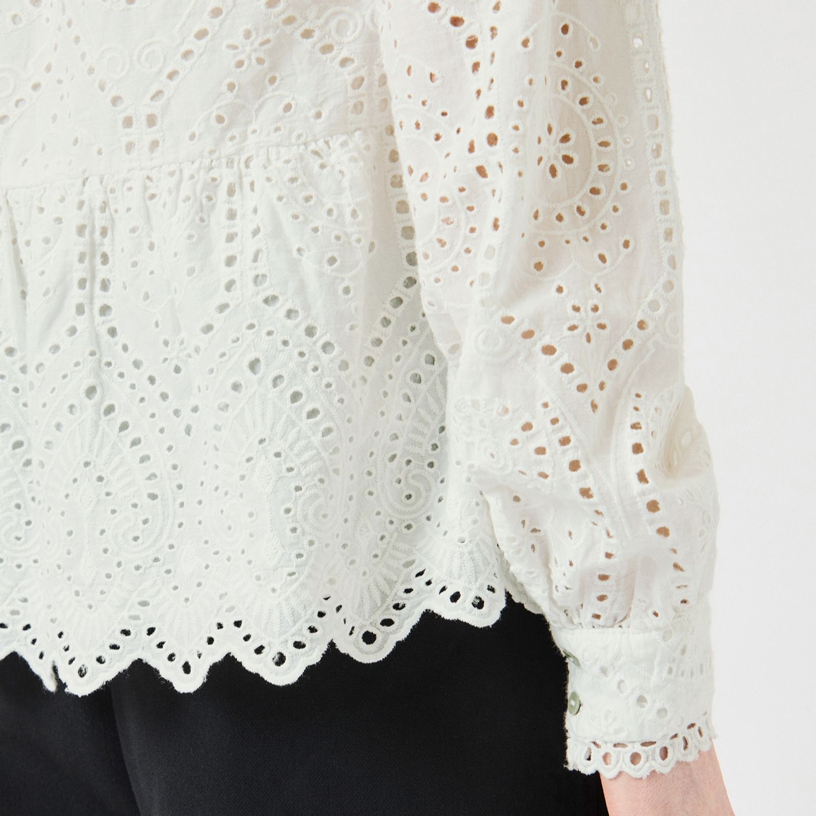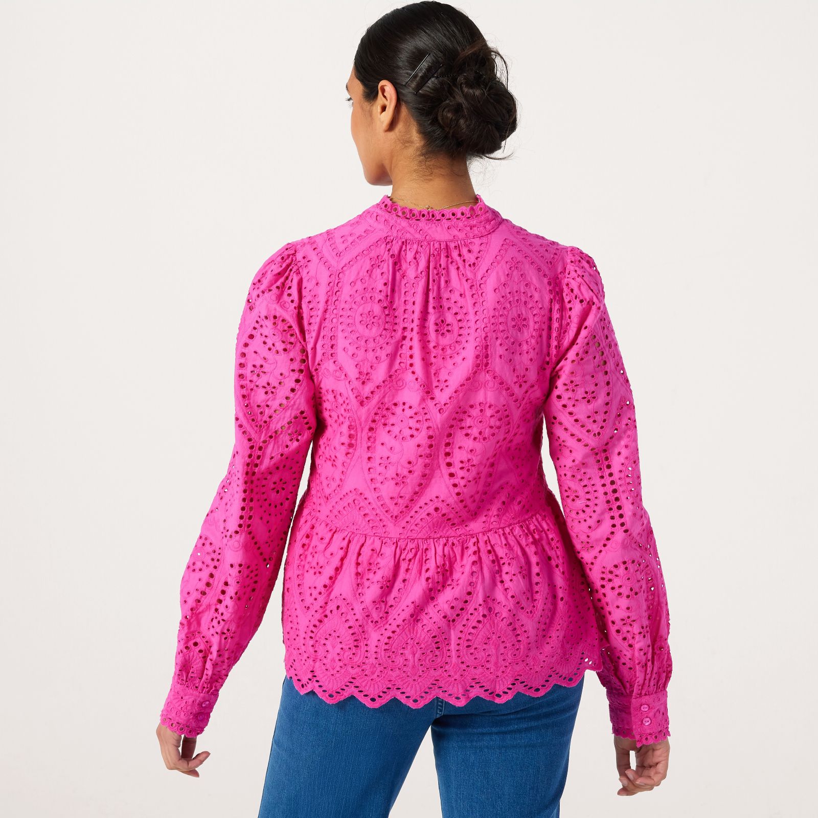 Delicate broderie detailing and a flattering waist focus bring a romantic touch to the Holi long sleeve top from YAS, while the v-neckline and pretty scalloped hem create a feminine silhouette that's effortlessly chic. Ideal for everything from brunch dates to weekend strolls, its versatile style makes it easy to dress up or down. Try pairing it with tailored trousers or a flowing midi skirt for a polished look.