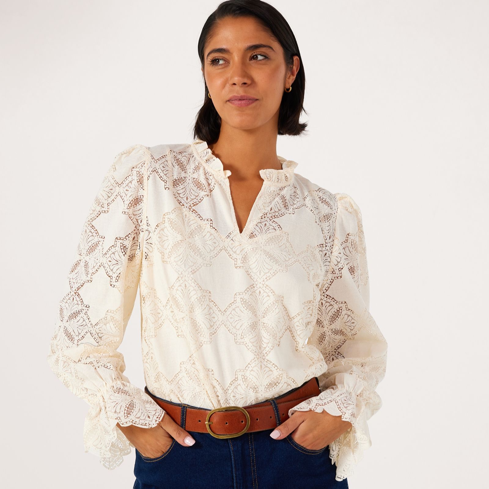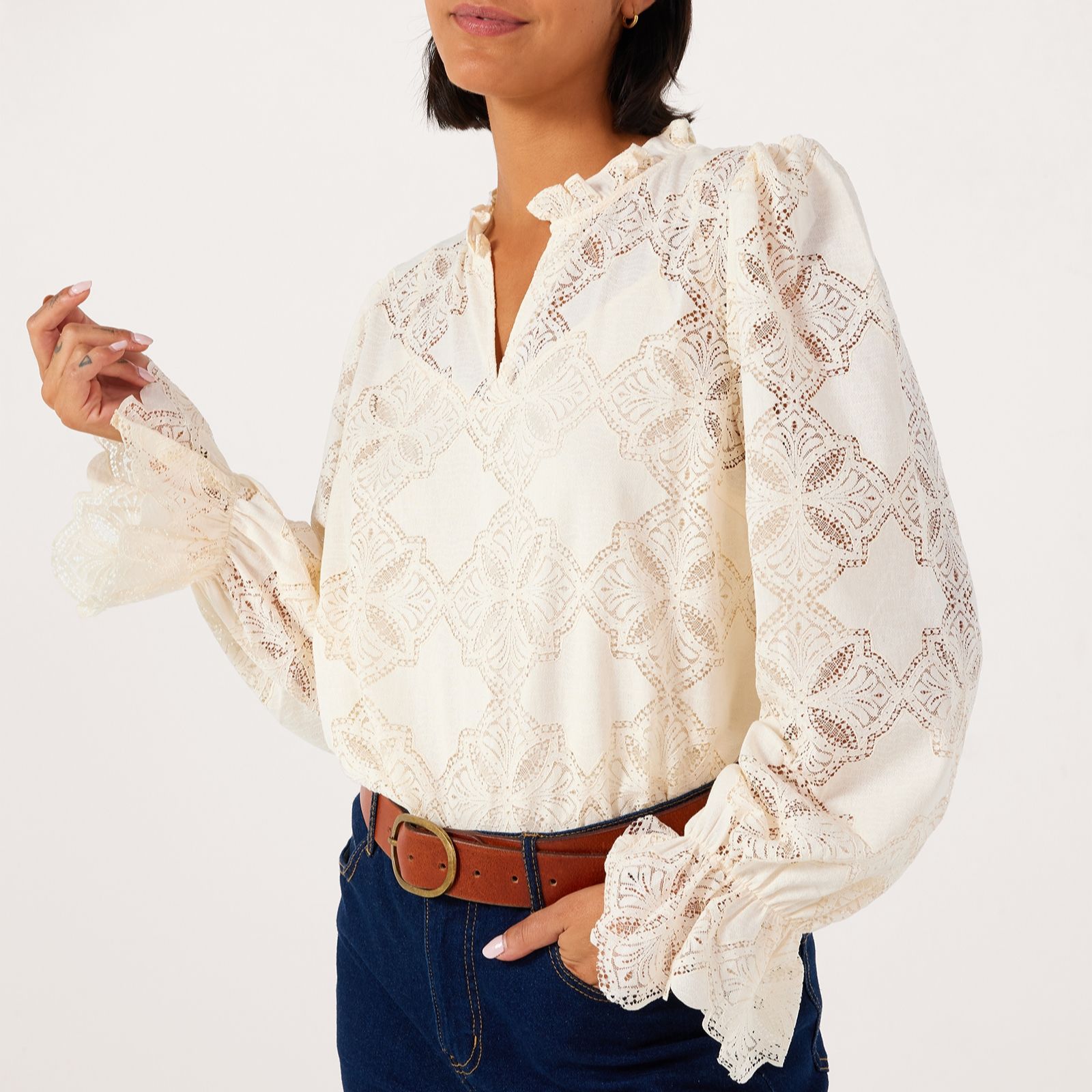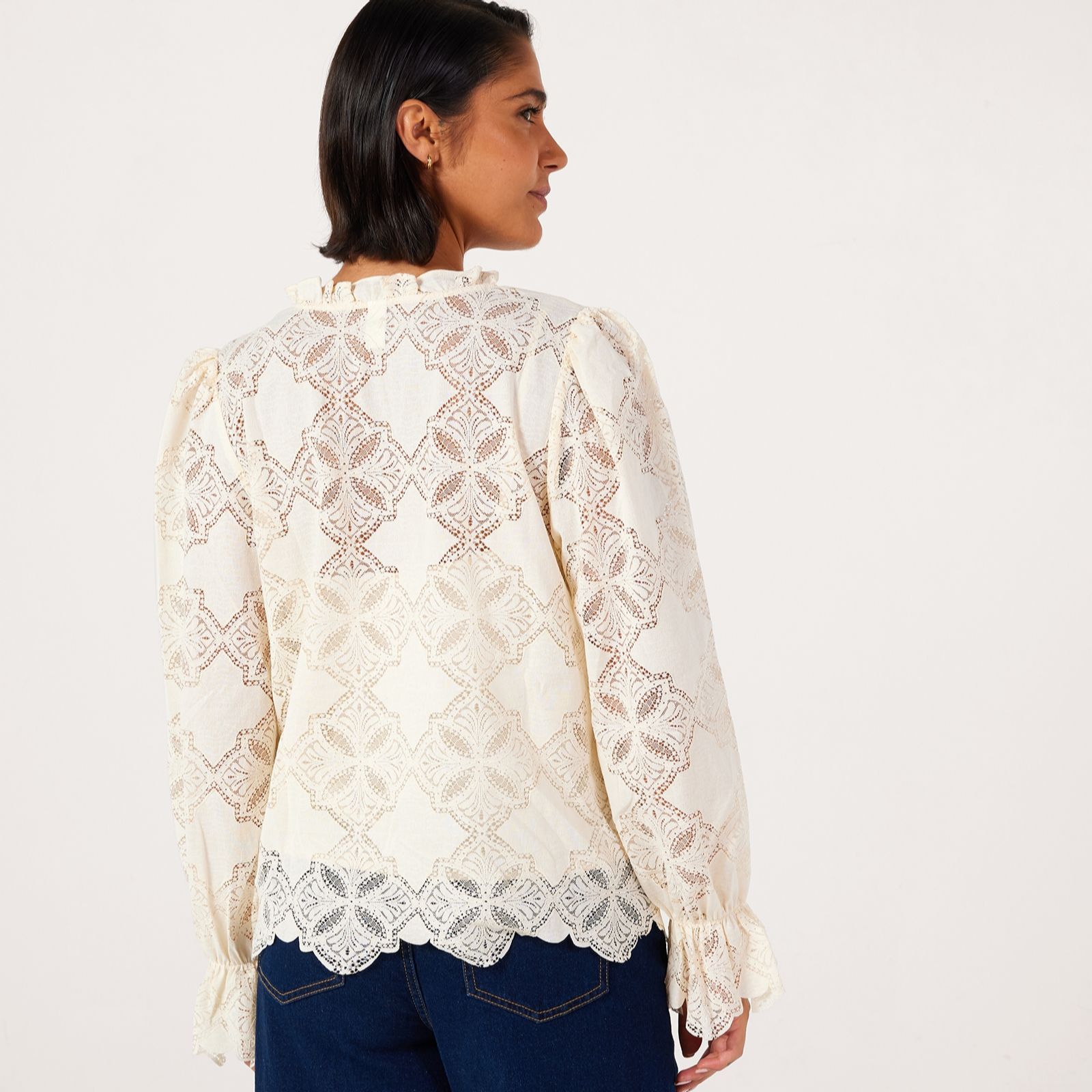 Intricately detailed for a touch of elegance, the Selmi blouse from YAS brings a feminine edge to your wardrobe with its delicate lace patterns and scalloped finish. Perfect for both special occasions and chic everyday styling, its regular fit and elasticated cuffs offer comfort with flair. For a polished ensemble, pair it with tailored trousers or a sleek skirt.