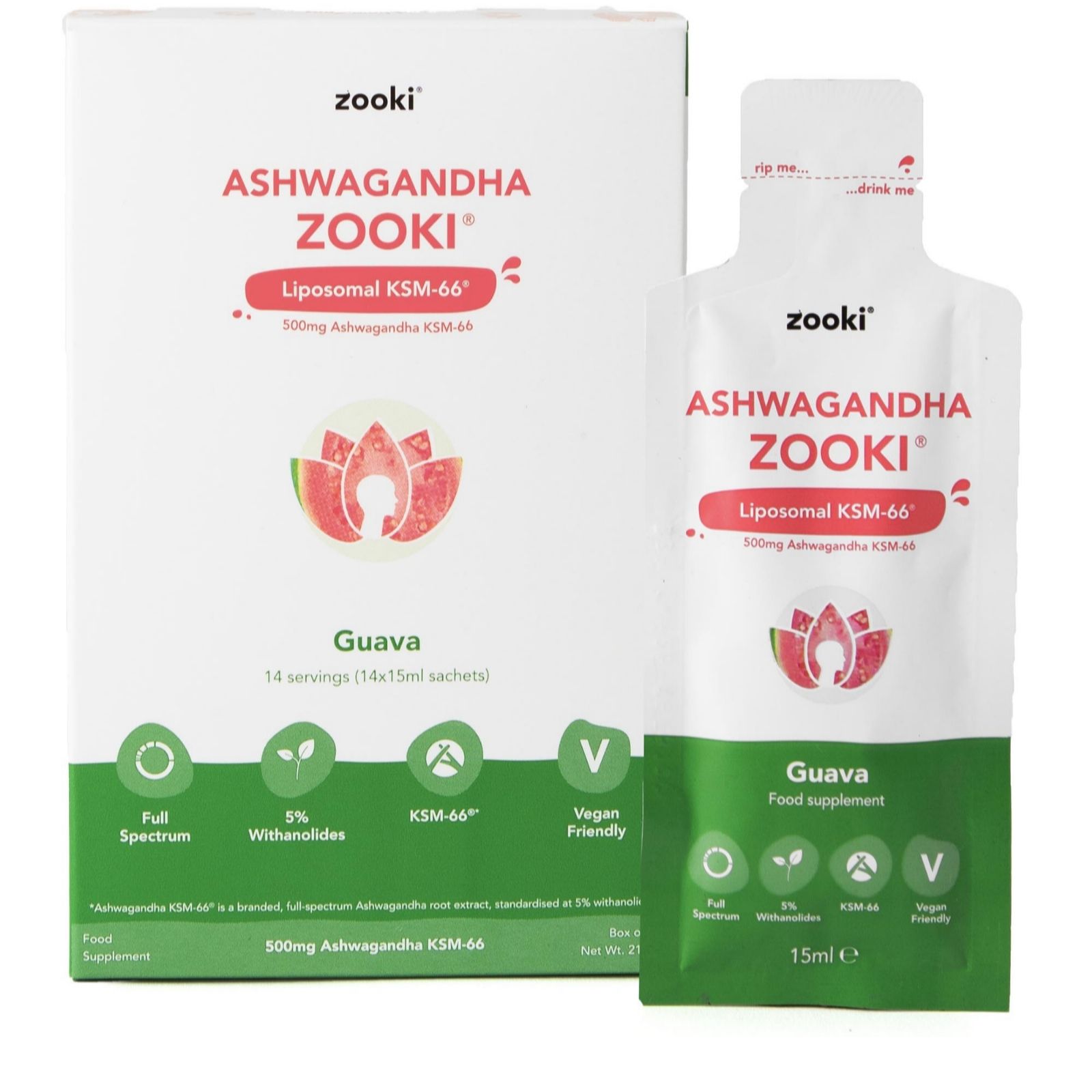 Discover the Ashwagandha Liquid Sachets from Zooki. With a delightful guava flavour, these sachets are designed to support your overall wellness journey. They are easy to incorporate into your daily routine, whether you're starting your day with a health-boosting smoothie or winding down with a calming yoghurt.